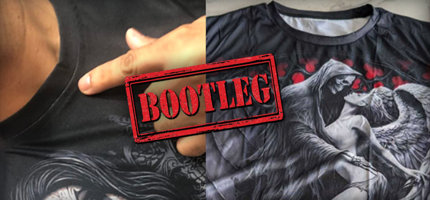 Many knockoff versions of our products are printed digitally on cheap low-quality polyester. This material starts off white, and black is printed on top. This results in visibly white seams and white showing through when the fabric is stretched.